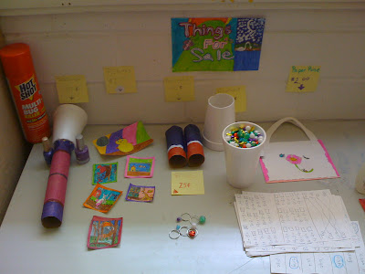 How cute is that? I don’t know why, but seeing this table full of homemade goodies totally changed my mood. Binoculars made from toilet paper tubes…only 50 cents! How about a paper purse for two bucks? Need to brush up on your math? Take a quiz!