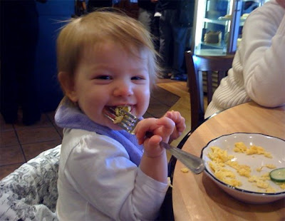 1 – Number of amazing things Scarlett did at breakfast on Sunday (She was playing with a fork … banging it on the table mainly … then she starts stabbing eggs and eating off of it like she had been doing it for years.) Pictures? Of course!