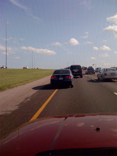 I can’t get away from them. My tolerance is definitely low (because I didn’t have to drive in rush-hour traffic from 2000 to 2008), but I think I attract the dumbest of the dumb. Not only did this guy drive halfway on the shoulder for the entire 10-mile stretch of freeway (even on the overpasses … he was maybe a foot from the bridge railing), he was also tailgating and stomping on his brakes randomly.